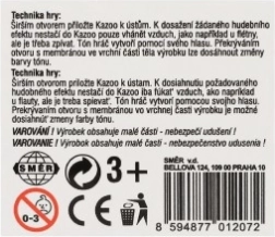 De kunststof constructie is duurzaam en dankzij de lengte van 12 cm neem je de kazoo makkelijk mee in je zak of rugzak.
