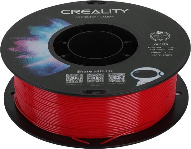 Het CREALITY CR‑PETG-filament in een diepe rode kleur combineert de voordelen van PLA en ABS. Dankzij de stabiele samenstelling van milieuvriendelijk PETG print het met uitstekende laaghechting en een hoge treksterkte van 49 MPa, terwijl het bestand blijft tegen vocht en scheuren. Het glanzende oppervlak accentueert modeldetails en geeft prints een professionele uitstraling.