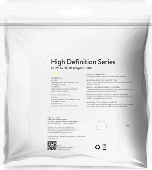 Geniet van filmavonden en gamen in briljante 4K UHD-kwaliteit. De BASEUS HDMI-kabel met HDMI 2.0 brengt beeld en geluid via één geleider over, bespaart ruimte en zorgt voor een stabiele verbinding zonder vertraging. Dankzij de ondersteuning voor 60 Hz krijg je vloeiende scènes en een betere respons in games.