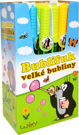 Bellenblaas staafje met Molletje-motief, inhoud 120 ml. Drie kleuren: geel, oranje, groen. Geweldig plezier voor kinderen, voor speeltuin en feestjes.