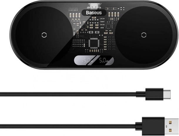 De Baseus draadloze oplader biedt snel en efficiënt opladen van twee apparaten tegelijk, zowel voor iOS- als Android-apparaten. Hij is uitgerust met een digitaal LED-display dat het actuele laadvermogen weergeeft.
