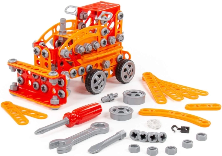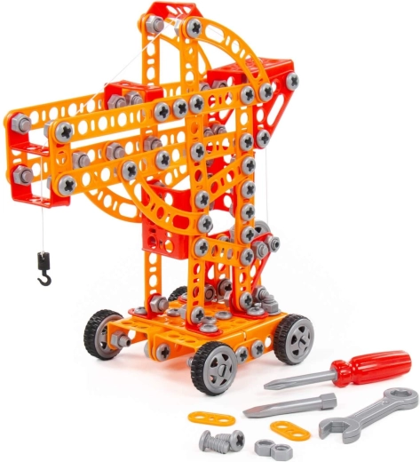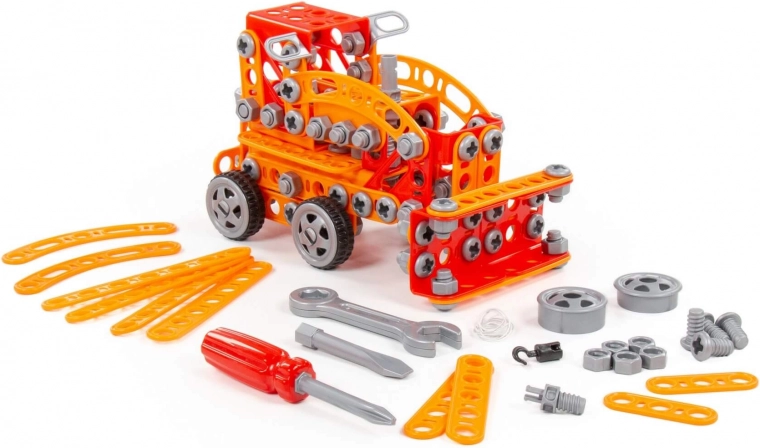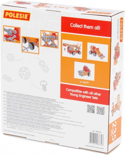 De bouwset Kleine Ingenieur met 235 onderdelen van fabrikant Polesie is speciaal gemaakt voor kleine ingenieurs. De onderdelen zijn uitgevoerd als stevige strips met gaten. De strips worden met schroeven en moeren aan elkaar bevestigd. De set bevat een gedetailleerde handleiding waarmee je de op de verpakking afgebeelde modellen kunt bouwen. Het spelen met de bouwset is niet beperkt tot bouwen volgens de instructies. Kleine ingenieurs kunnen hun fantasie de vrije loop laten en iets nieuws creëren, en zo hun creatieve potentieel ontdekken. De verschillende typen bouwsets hebben verschillende thema’s, maar zijn volledig compatibel. Kinderen kunnen zo een hele collectie modellen samenstellen!