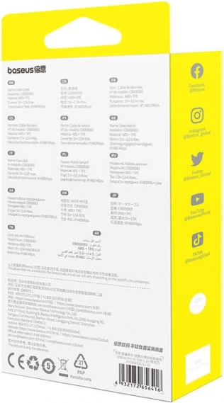 Zoekt u één kabel voor al uw apparaten? BASEUS Free2Draw combineert de drie meest gebruikte uiteinden – USB‑C, Lightning en micro‑USB – in één compacte oplossing. Dankzij tot 3,5 A zorgt hij voor snel energie bijladen en met stabiele gegevensoverdracht tot 480 Mb/s (Lightning) kan hij ook bestanden synchroniseren.