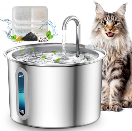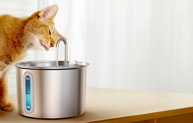 Dankzij het gebruik van 316 roestvrij staal blijft het water onbesmet en is de fontein eenvoudig schoon te maken. Alle onderdelen zijn vaatwasmachinebestendig, wat het onderhoud vereenvoudigt. Bovendien kunt u het waterniveau controleren dankzij het transparante venster met LED-verlichting.