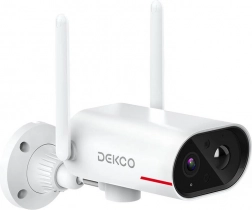 Geavanceerde PIR‑detectie herkent beweging van personen, dieren of voertuigen en beperkt valse meldingen. Tweerichtingscommunicatie laat je met bezoekers praten of ongenode gasten afschrikken. Opnames sla je op een microSD (tot 128 GB) of in de DEKCO‑cloud op, terwijl de DEKCO‑app live‑weergave, notificaties en bediening op afstand vanaf elke locatie biedt.