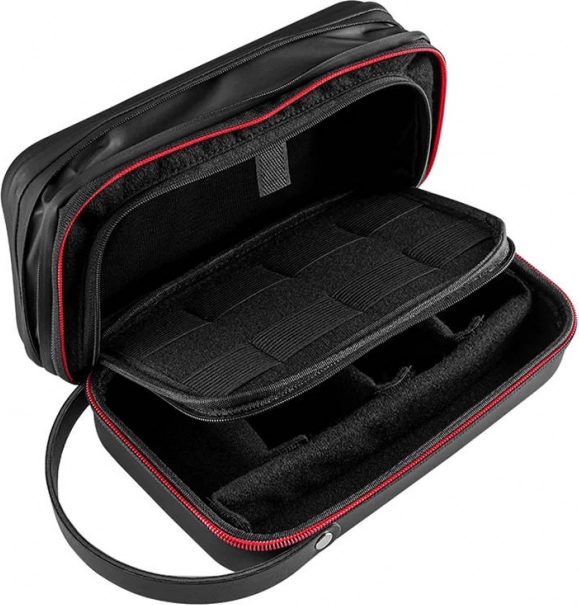 De doordachte interne indeling met verstelbare banden en verdelers laat je de ruimte precies afstemmen op camera, batterijen, selfiestick, kabels en andere accessoires. Een aparte meshvak is handig voor kleine spullen. Draaibaar handvat zorgt voor comfortabel dragen; de compacte afmetingen passen gemakkelijk in een rugzak.