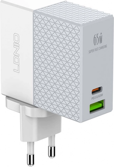 De LDNIO 65W oplader is uitgerust met niet alleen een USB‑A-, maar ook een USB‑C‑poort, waardoor gelijktijdig opladen van twee apparaten mogelijk is met een vermogen tot 65 W. Ondersteuning voor PD- en QC3.0‑protocollen garandeert efficiënt en veilig opladen, ideaal voor moderne apparaten.