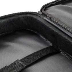 De binnenruimte kan worden aangepast aan de grootte van het apparaat met behulp van een verstelbare band. De zachte interne foam beschermt tegen stoten en de extra vakken maken het mogelijk accessoires zoals kabels of muizen op te bergen, zodat u alles wat u nodig heeft altijd bij de hand hebt.