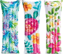 Het luchtbed is versierd met drie kleurrijke patronen die de sfeer van een tropisch paradijs oproepen en zeker de aandacht zullen trekken.