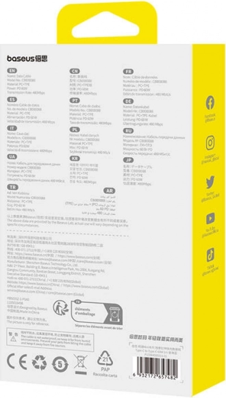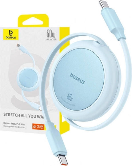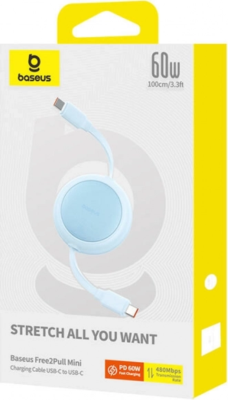 Geniet van orde zonder in de knoop geraakte kabels. De BASEUS Free2Pull Mini in een ronde behuizing past dankzij de automatische intrekfunctie eenvoudig de lengte aan jouw behoefte aan, is licht en past perfect in je broekzak of rugzak. Ondersteuning voor Power Delivery 60 W laadt telefoons, tablets en laptops met USB‑C betrouwbaar op.