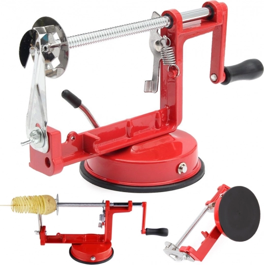 De handmatige machine voor gedraaide aardappels verandert gewone aardappels in opvallende spiralen die na het frituren onweerstaanbaar knapperig worden. Dankzij het scherpe roestvrijstalen mes en de stabiele zuignap bereid je ze makkelijk, snel en veilig op elk vlak oppervlak.