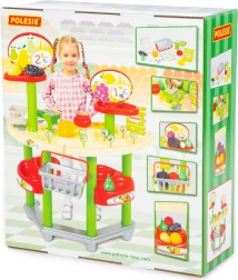 Betreed de fantasiewereld met de Supermarket-speelset van het merk Polesie. Dankzij realistische accessoires zoals prijskaartjes, munten en verschillende soorten producten creëren kinderen gemakkelijk de sfeer van een echte winkel. De toonbank met vakken en de kassa nodigen uit tot natuurlijk rollenspel – verkoper, klant, caissière – en bevorderen sociale interactie.