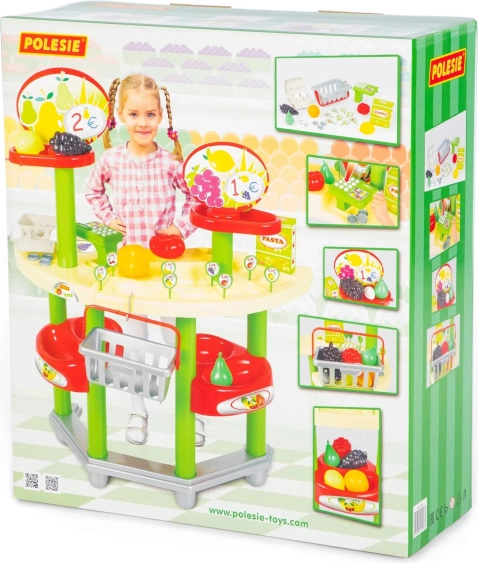 Winkeltje spelen stimuleert communicatie, rekenen, de fijne motoriek en logisch denken. De stabiele constructie van niet-toxisch plastic is veilig en duurzaam voor dagelijks spel. Dankzij de doordachte hoogte van de toonbank 87 cm is de set comfortabel voor kinderen in de kleuterleeftijd.