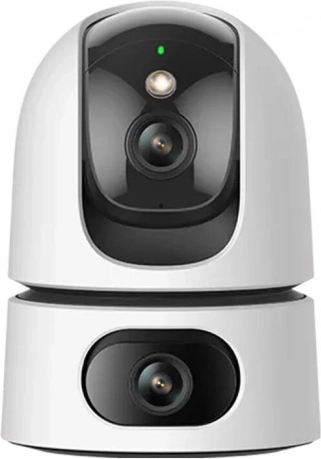 De IMOU Ranger Dual 6MP is een slimme interne Wi‑Fi PTZ‑camera met twee 3MP‑sensoren, waarmee je gelijktijdig twee gebieden kunt bewaken – bijvoorbeeld de woonkamer en de terrasentree. De combinatie van een PTZ‑lens (pan/tilt) en een vaste lens zorgt voor vloeiende 360° dekking zonder dode hoeken. ’s Nachts levert hij een helder beeld dankzij zwart‑wit én kleurennachtzicht en een slimme modus die bij bewegingsdetectie automatisch naar kleur overschakelt.