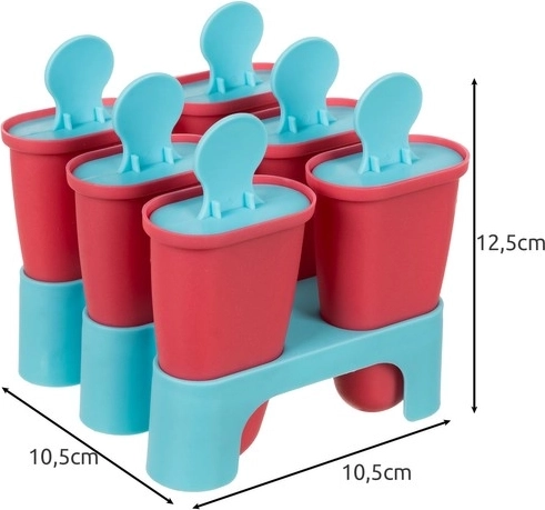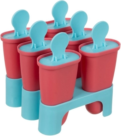 De slimme constructie biedt 6 cilindrische vormen voor gelijkmatig invriezen. Het deksel werkt als stokje met een comfortabele ronde greep en drie openingen voor een stevige verbinding met het bevroren mengsel, zodat de ijslolly na het uitnemen niet wegglijdt. De stabiele basis houdt de vormen perfect rechtop tijdens het vullen en invriezen, wat rommel minimaliseert.