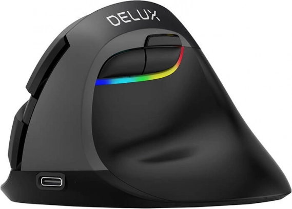 Ontdek comfort en precisie met de Delux M618 Mini verticale muis. Het ergonomische ontwerp ontlast de pols, draadloze 2,4 GHz- en Bluetooth-verbinding geeft bewegingsvrijheid en instelbare DPI tot 4000 biedt nauwkeurige controle. Dankzij de stille knoppen, een 500 mAh-batterij met opladen via USB‑C en RGB‑verlichting is hij ideaal voor werk en studie.