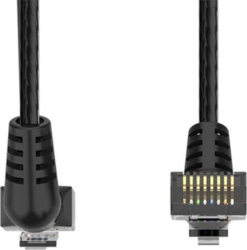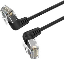 De haakse, volledig draaibare connector past zich aan de aansluitrichting aan, vermindert de belasting van de poort en vergemakkelijkt de installatie achter meubels of in een rack.