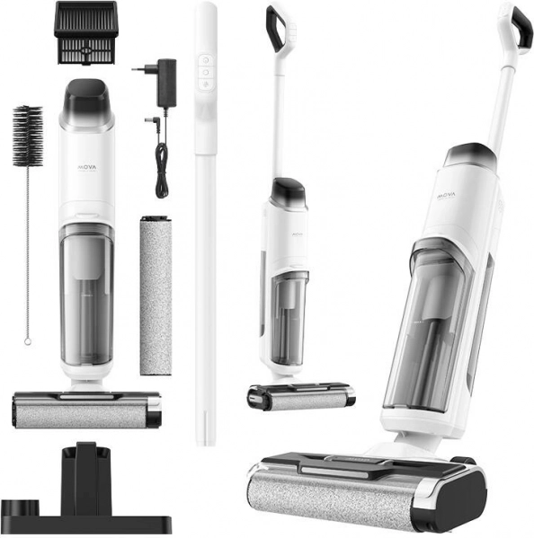 De Mova K10 Pro is ergonomisch ontworpen en weegt slechts 3,8 kg, wat het hanteren vergemakkelijkt. Het ingebouwde LED-scherm geeft informatie over reinigingsmodi, batterijniveau en andere parameters. Ook spraakmeldingen worden ondersteund voor directe feedback.
