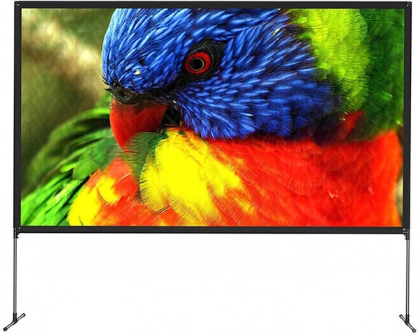 100" draagbaar projectiescherm van BlitzWolf met 4K-resolutie, realistische kleuren en een kijkhoek van 160°. Ideaal voor binnen en buiten.