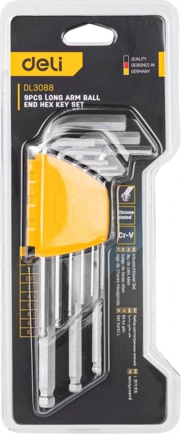 De Deli Tools EDL3088 inbussleutelset is ontworpen voor veeleisende gebruikers die de kwaliteit en duurzaamheid van Cr-V staal waarderen. Deze set bevat 9 lange sleutels in verschillende maten, wat veelzijdigheid tijdens het werk garandeert: