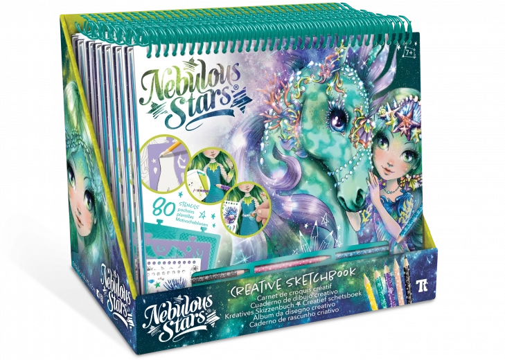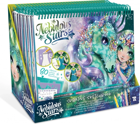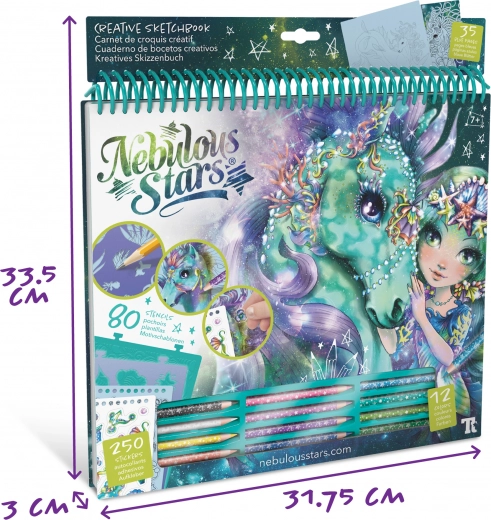 Ontdek de magische wereld van NEBULOUS STARS met dit creatieve schetsboek in groen. De set biedt alles voor creatief plezier – van 250 stickers en 12 kleurpotloden tot 80 sjablonen en 35 afbeeldingsvellen. Dankzij de instructies voor 12 tekentechnieken ontwikkelen kinderen hun fantasie, fijne motoriek en gevoel voor kleur. Ideaal cadeau voor kleine kunstenaars vanaf 7 jaar.