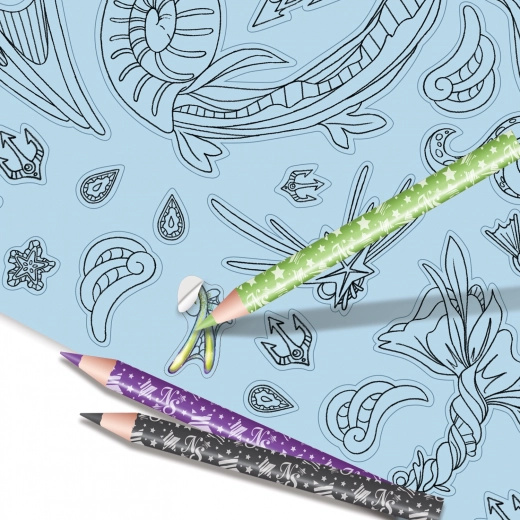 - 12 kleurpotloden en 80 sjablonen voor eindeloze variaties