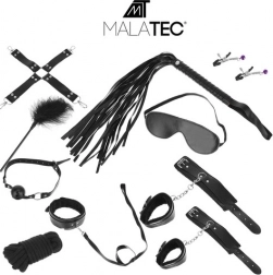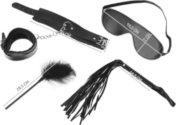 De set bevat alles wat je nodig hebt voor verschillende soorten BDSM-spelletjes, van zachte prikkelingen tot zinnelijke worstelingen.
