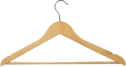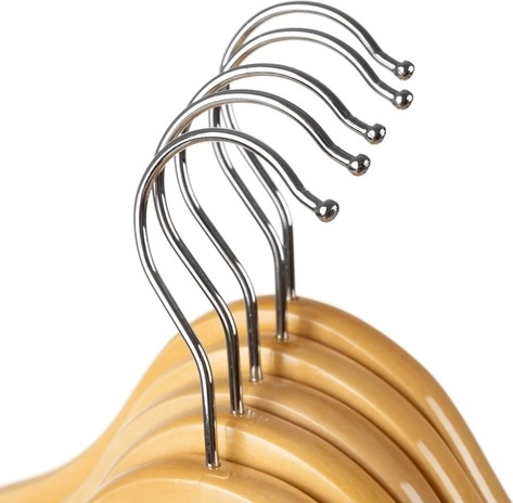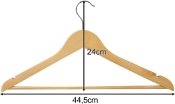 De doordachte ergonomische vorm helpt de natuurlijke lijn van het kledingstuk te behouden en vermindert kreukvorming. Ingefreesde inkepingen aan de uiteinden voorkomen dat jurken of tops wegglijden. De draaibare metalen haak maakt hanteren eenvoudig en de ronde houten stang is ideaal voor broeken, sjaals of dassen – je hangt meerdere kledingstukken comfortabel aan één hanger.
