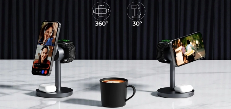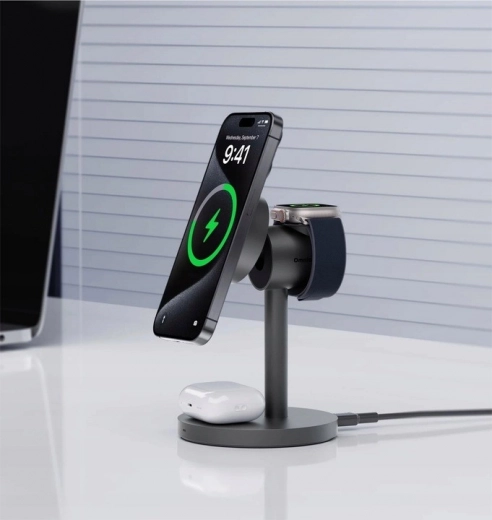 De Aukey MagFusion 3-in-1 draadloze oplader laat je tot drie apparaten tegelijk opladen met een vermogen tot 15 W, wat zorgt voor snel en efficiënt laden. De Qi2-technologie met magnetische uitlijning minimaliseert energieverlies.