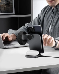 Geniet van twee keer zo snel draadloos laden vergeleken met gewone 7,5 W pads. MagFusion levert tot 15 W aan compatibele iPhones en laadt tegelijk Apple Watch en AirPods.