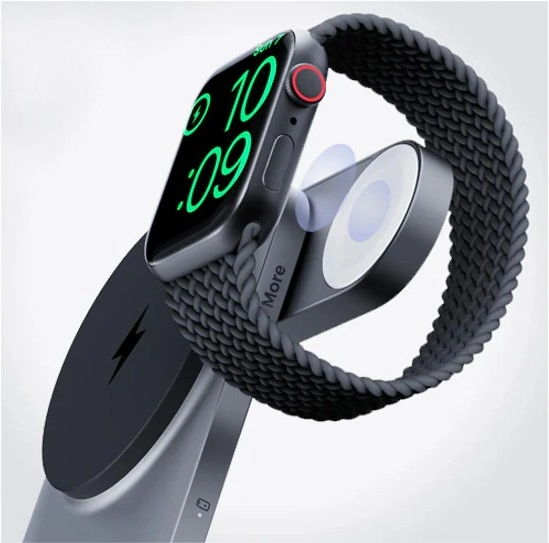 De geïntegreerde, door Apple gecertificeerde module laadt alle Apple Watch‑modellen, inclusief Series 9 en Ultra 2, veilig en snel op.