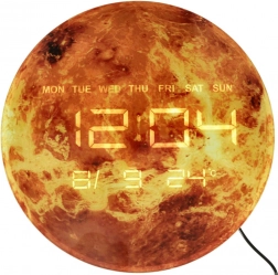 De designklok met realistische grafiek van de planeet Mars wordt de blikvanger in elke ruimte – van kinderkamer tot werkkamer. Het overzichtelijke LED-display biedt tijd in 12/24 uursformaat, datum (M/D/J), de Engelstalige afkorting van de weekdag en de actuele temperatuur in °C.