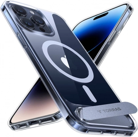 De elegante en duurzame Torras UPRO Pstand-hoes beschermt je iPhone 15 Pro Max en verhoogt tegelijkertijd het gebruiksgemak. Dankzij de geïntegreerde uitschuifbare standaard geniet je van comfortabel contentkijken, terwijl de magnetische constructie snel draadloos opladen en compatibiliteit met MagSafe-accessoires ondersteunt. Meerlaagse bescherming met X-shock-technologie en luchtkussentjes absorbeert schokken en beschermt tegen vallen en krassen. Het transparante ontwerp benadrukt de originele look van je telefoon zonder onnodige compromissen.