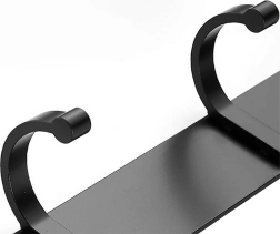 Meerdere haken voor handdoeken, sponsen en accessoires houden alles binnen handbereik en overzichtelijk geordend. Het moderne zwarte design past bij elk interieur.