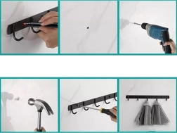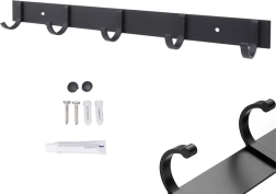Een elegante en functionele oplossing voor dagelijkse orde. Deze wandkapstok van duurzaam metaal biedt 5 stevige haken voor handdoeken, badjassen, tassen of accessoires. De moderne zwarte afwerking past in de badkamer, hal en slaapkamer en laat zich eenvoudig combineren met uiteenlopende interieurstijlen.