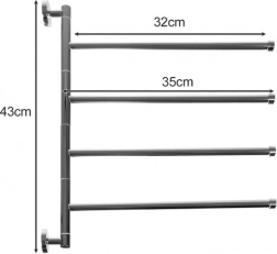 Het rek bestaat uit vier segmenten, die elk onafhankelijk kunnen roteren tot 360 graden. Dit maakt snelle en eenvoudige aanpassing van de armen mogelijk volgens de huidige behoeften. De armen zijn geplaatst op 8 cm van elkaar, wat voldoende ruimte tussen de opgehangen items verzekert.