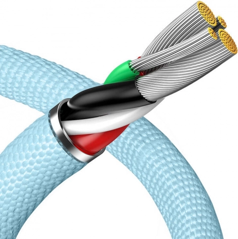 De textiele vlecht en aluminium connectoren beschermen de kabel tegen knikken en in de knoop raken en zorgen voor een lange levensduur bij dagelijks gebruik.