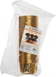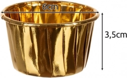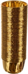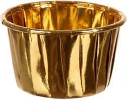 Accentueer elk dessert met stijlvolle, gouden muffinvormpjes. De combinatie van hoogwaardig papier en aluminiumfolie garandeert schoon bakken zonder doorlekken van vet en vocht. De vormpjes zijn wegwerp, hygiënisch en vereisen geen invetten van de bakvorm.