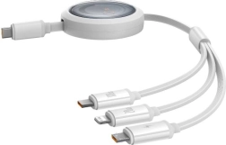 Nooit meer verwarde kabels of zoeken naar de juiste connector. De BASEUS Free2Draw is een praktische uitschuifbare 3‑in‑1‑kabel met USB‑C, Lightning en Micro USB, waarmee je telefoons, tablets, oordopjes en andere elektronica oplaadt. Het maximale vermogen PD 100 W via USB‑C is zelfs geschikt voor laptops met Power Delivery‑ondersteuning, Lightning levert 20 W en Micro USB 10 W. Voor snelle bestandssynchronisatie is er gegevensoverdracht van 480 Mb/s.