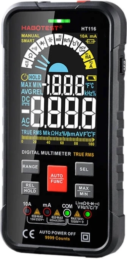 De Habotest HT116 multimeter is ontworpen voor nauwkeurigheid en efficiëntie. Dit apparaat maakt het mogelijk om zowel wissel- als gelijkspanning, stroom en weerstand met hoge precisie te meten. Ook is er contactloze spanningsdetectie (NCV) inbegrepen, wat de veiligheid bij het gebruik van het apparaat verhoogt.