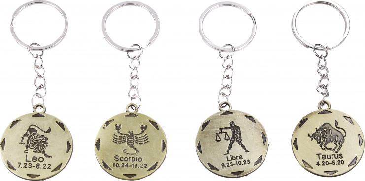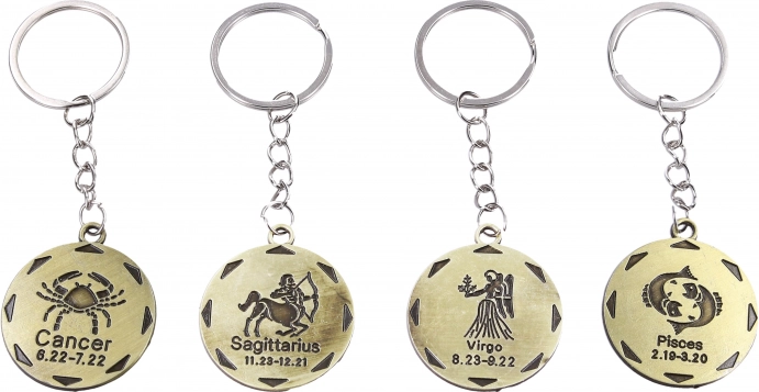 Stijlvolle ronde sleutelhanger met sterrenbeeld-motief. Keuze uit 12 tekens – de ideale accessoire voor je sleutels, rugzak of handtas en een geweldig cadeau-idee.