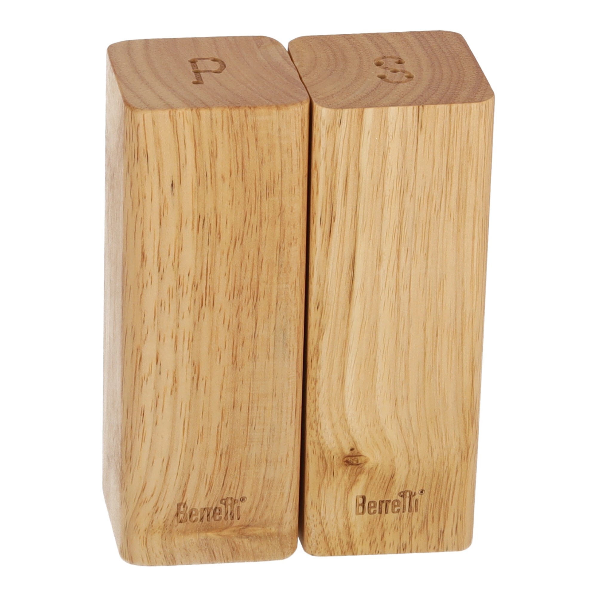 De BERRETTI-set, bestaande uit een zout- en peperstrooier, is gemaakt van natuurlijk rubberboomhout. Het eenvoudige geometrische ontwerp met afmetingen van 5,5x5,5x15 cm geeft elke keuken elegantie en moderniteit. Rubberboomhout zorgt voor duurzaamheid en stevigheid en voegt tegelijk warmte en een natuurlijke uitstraling toe. Deze praktische en stijlvolle set past op elke tafel en maakt het doseren van zout en peper eenvoudig.