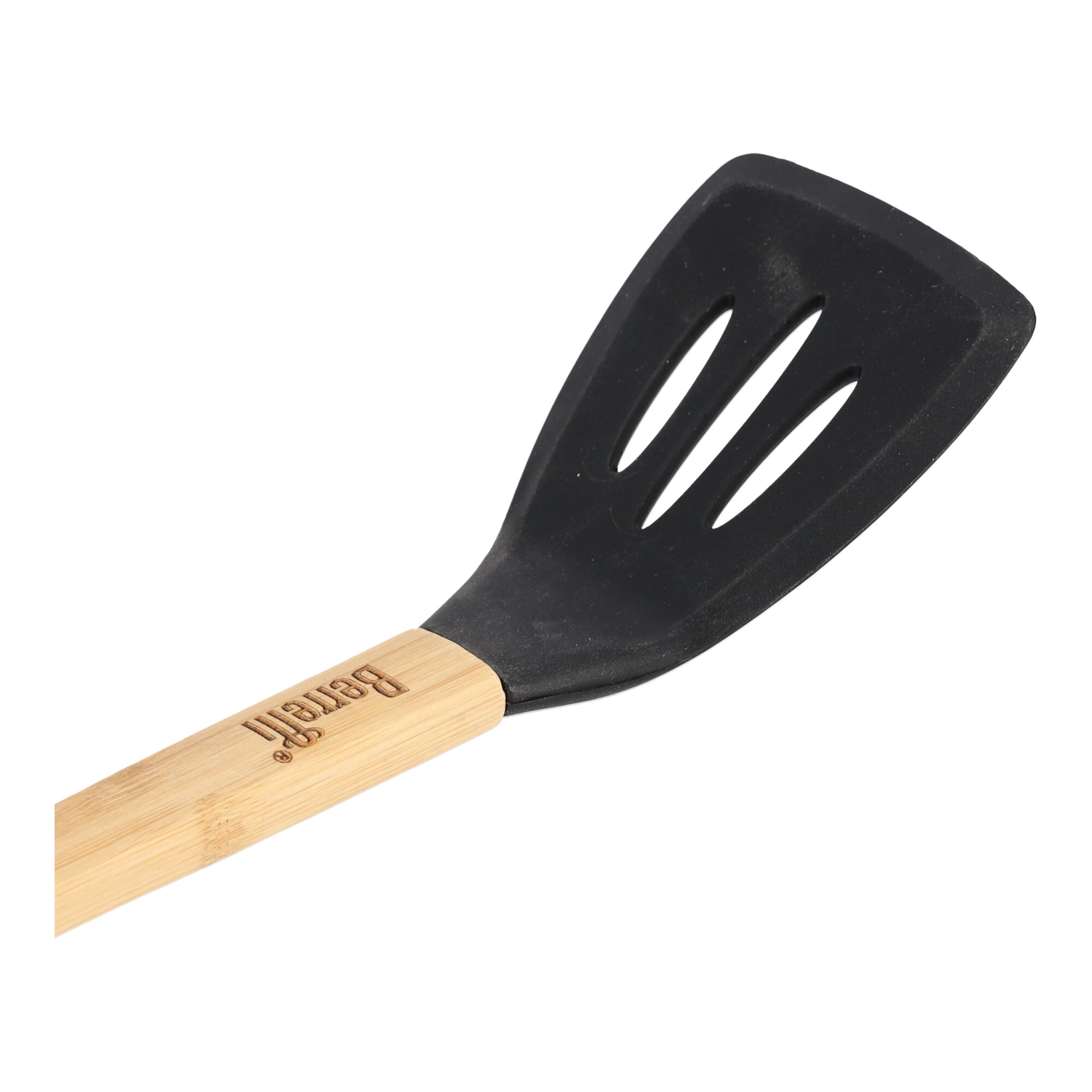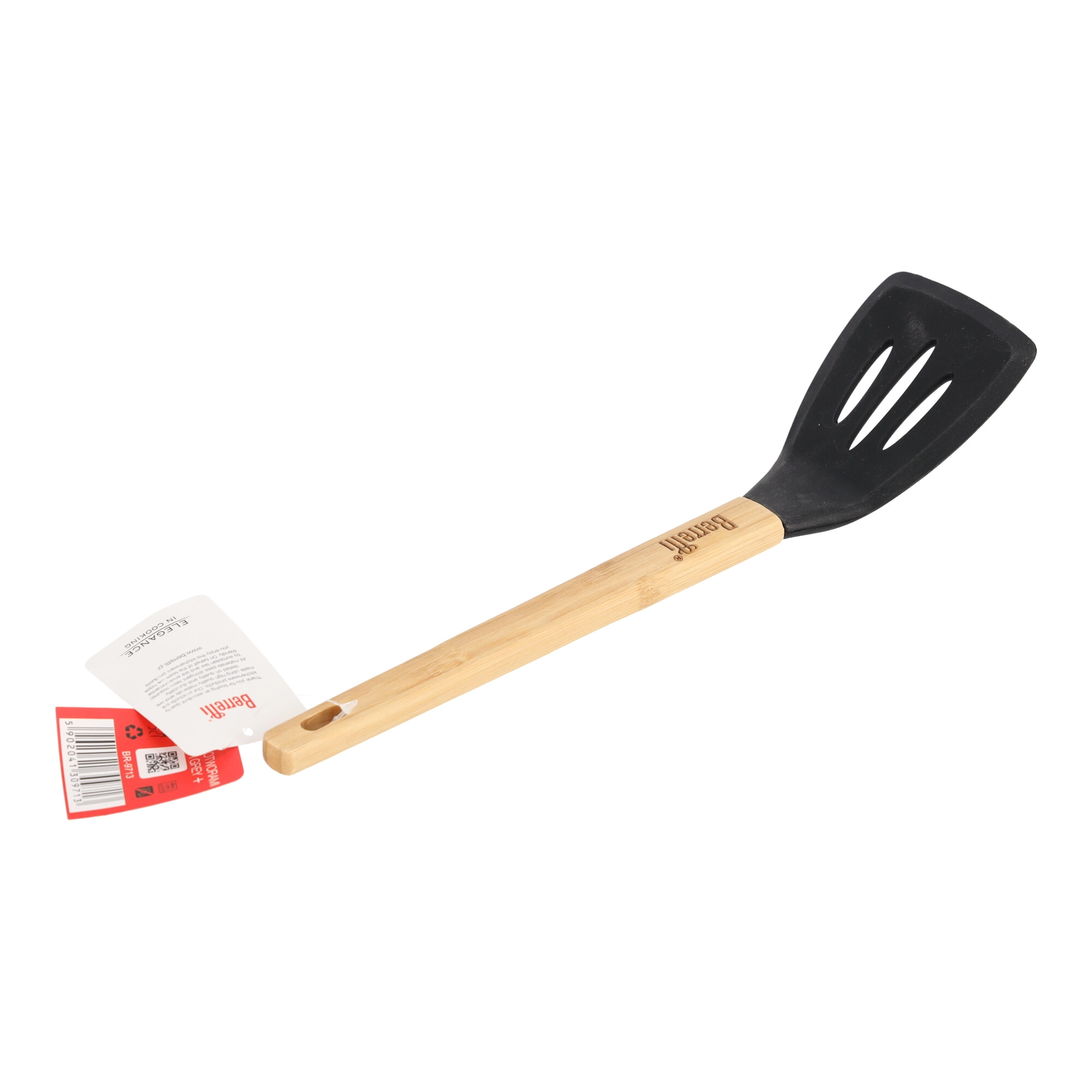 Het handvat van de spatel is gemaakt van ecologisch bamboehout, dat niet alleen milieuvriendelijk is, maar ook comfortabel in gebruik. Het ligt perfect in de hand, biedt een veilige grip en voorkomt wegglijden tijdens keukentaken.