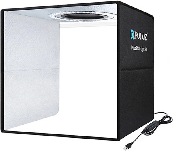 Inbegrepen zijn 6 gekleurde achtergronden (wit, zwart, groen, rood, blauw, oranje) om je scene snel af te stemmen. De tent is eenvoudig op te zetten, wordt gevoed via een USB-kabel (2 m) en maakt fotograferen vanuit meerdere hoeken mogelijk, inclusief top-down. Het interne reflecterende oppervlak verspreidt het licht gelijkmatig voor consistente resultaten zonder overbelichting.
