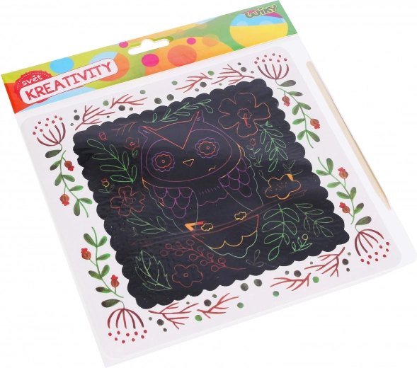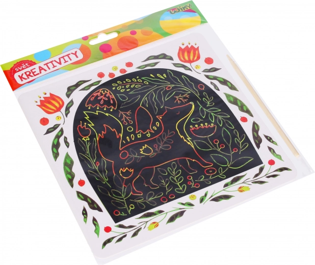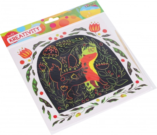 Ontdek uw creativiteit met onze krasplaatje in de afmetingen 20x20 cm. In de verpakking vindt u een krabber en een plaatje dat u naar eigen fantasie kunt versieren.