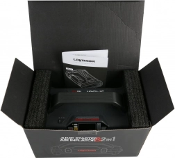 Het apparaat dient als starthulp, powerbank en zaklamp met USB 3.0 snelladen en drie lichtstanden: continu licht, stroboscoop en SOS.