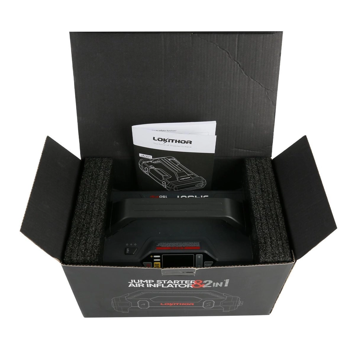 Dankzij de LED-zaklamp met meerdere modi is het ook in het donker eenvoudig te gebruiken. De Lokithor JA301 is uitgerust met bescherming tegen overspanning en oververhitting, wat de veiligheid van het apparaat en uw voertuigen waarborgt.