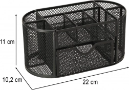 De stevige metalen constructie in elegant zwart is bestand tegen dagelijks gebruik. De afmetingen van de organizer, 22 × 11 × 10,2 cm, besparen ruimte op je bureau.