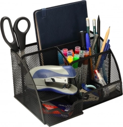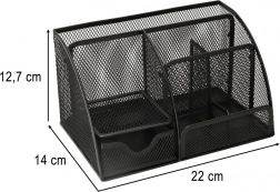 Het duurzame metalen gaas in zwart oogt elegant, biedt direct overzicht over de inhoud en past perfect in kantoor, thuiswerkplek en studentenkamer. De organizer is ook te gebruiken voor cosmetica, make-upkwasten of klein gereedschap.