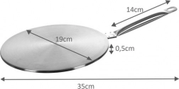 Praktisch en comfortabel gebruikDe adapter is niet alleen functioneel, maar ook uiterst comfortabel voor dagelijks gebruik. Uitgerust met een handgreep die niet opwarmt, maakt het mogelijkveilig en gemakkelijk te verplaatsen van plaats naar plaats zelfs tijdens het koken. De handgreep is ook uitgerust meteen gat zodat de adapter eenvoudig opgehangen kan worden, wat het opbergen gemakkelijk maakt en ervoor zorgt dat het altijd binnen handbereik is wanneer u het nodig hebt.De compacte afmetingen van 19 cm in diametermaken de adapter geschikt voor de meeste kookgerei en neemt niet veel plaats in de keuken in beslag.